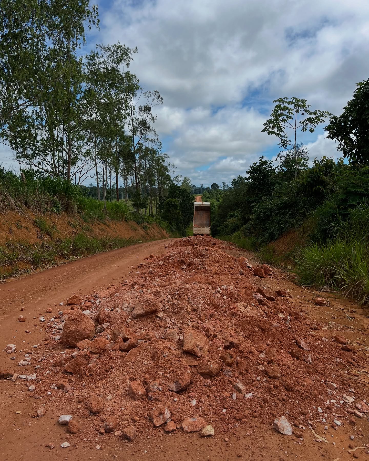 A Secretaria de Obras está realizando os serviços de patrolamento e cascalhamento na Linha MC-06, visando a recuperação dos pontos críticos da estrada.
