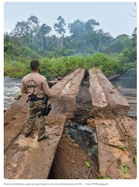 A Polícia Federal (PF) destruiu uma ponte usada por garimpeiros para acessar as Terras Indígenas Roosevelt e Parque do Aripuanã, em Rondônia, durante uma operação realizada na quinta-feira (9).